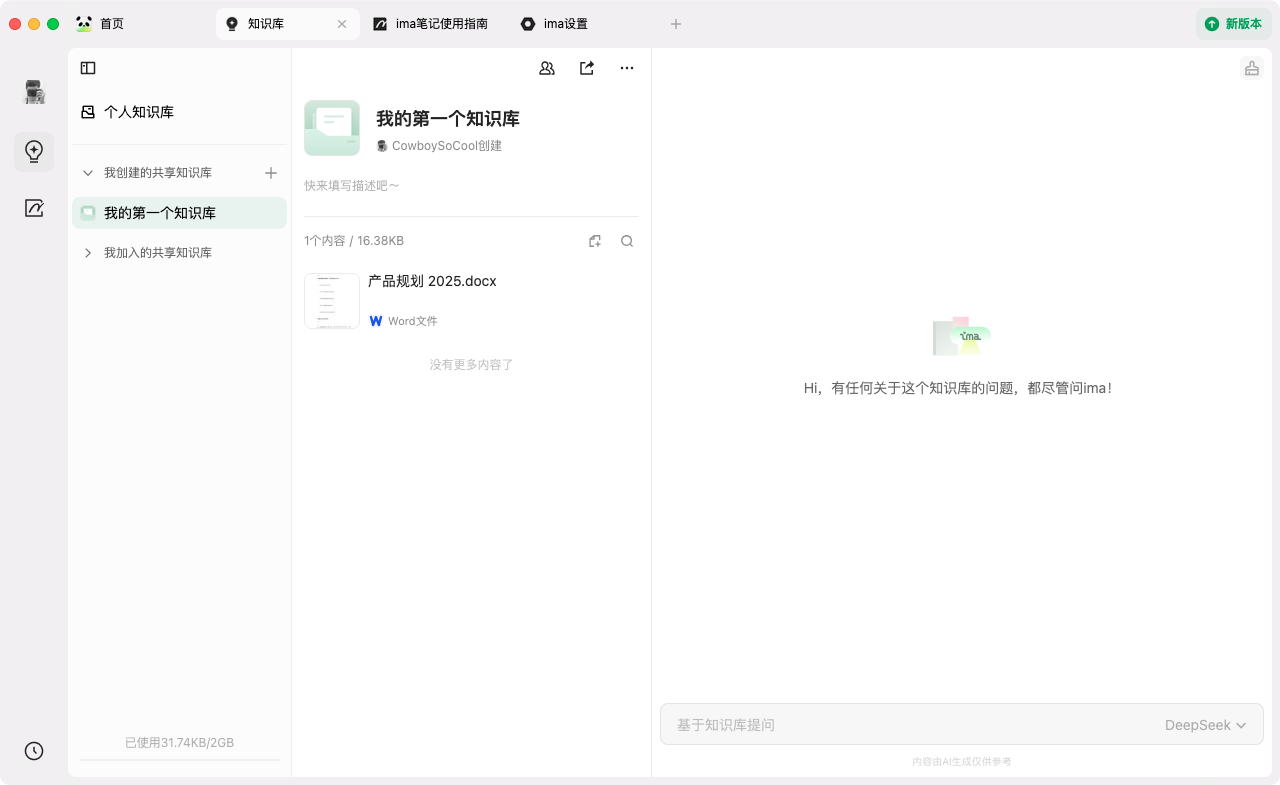 - 国产首选:腾讯 ima,飞书知识库等,操作简单,中文适配好。